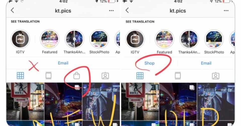 インスタショップボタンに変化 左新uiタブへ 右旧デザインアクションボタン Instagramアップデート19 最新情報 Koukichi T インスタ速報 ストックフォトグラファー Note